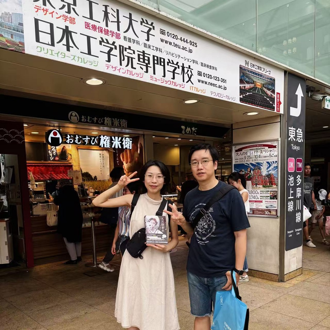 最后,感谢日语科幻、推理译者罗亚星在我疲于日本铁道迷宫时,贴心约定在蒲田车站见面。两个人就站在进出口旁咣咣一通交流。幸运的是,之前创作的作品刚好有了进展。除了感谢他一直以来的作品推荐,也恭喜他的新作《久月邸事件》出版。我们留下合照一张,背景刚好是会场学校,嘿!