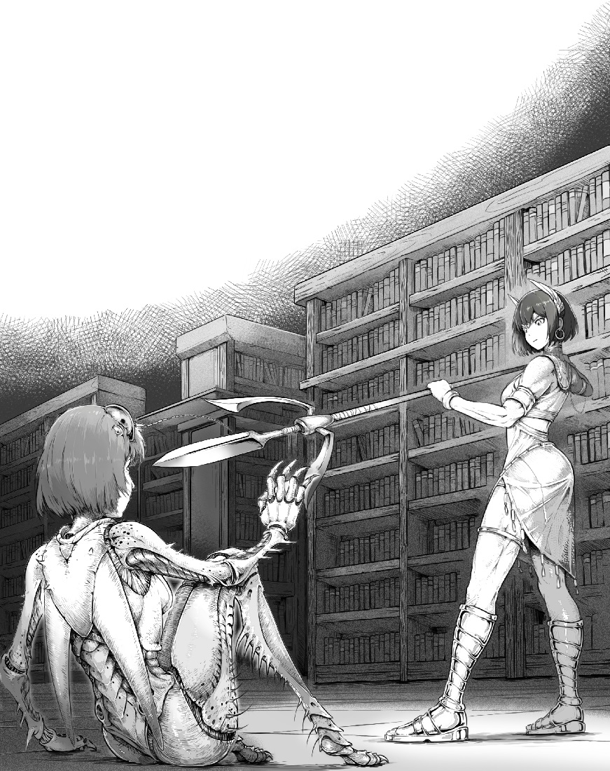 女王单手拿着王矛,像转动一根牙签般轻巧旋弄。她无限分形的手指紧握矛身,紧握住它那悖论的开端与注定的终结。