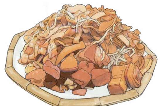 郑州特色小吃。烹制时,先将配菜在锅中炒熟,然后将饼条放在配菜上,添加调味料和高汤焖制而成。成品入口软而不烂、香而不焦。