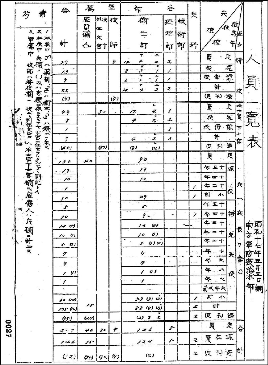 图1-14 南方军防疫给水部的第一份人员记录档案,编号第0027页