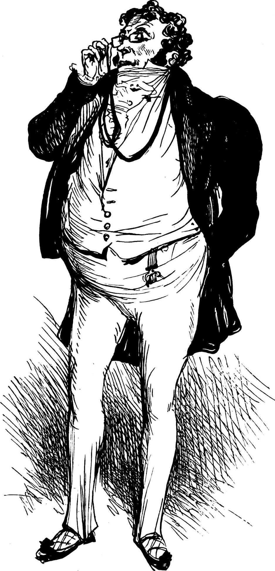 特·巴日东先生瞧着吕西安走来走去,猜疑的眼神使吕西安十分难受;幸亏穿着号衣的老当差通报杜·夏德莱先生到了。男爵神态自若地进来,向他的朋友巴日东行了礼,对吕西安略微点点头,那种招呼的方式当时很流行,诗人却觉得他是仗着财势瞧不起人。西克施德·杜·夏德莱的裤子白得耀眼,裤脚上两条带子套着鞋底,把裤子的折缝拉得笔直。他穿着讲究的皮鞋、苏格兰细纱袜子。手眼镜的黑丝带在白背心上飘荡。黑礼服的巴黎款式和巴黎做工特别令人注目。美男子的气派跟他过去的经历完全符合,只是多了一把年纪,滚圆的肚子不容易约束到合乎风流潇洒的标准。因为出过远门,饱经风霜,有股冷酷的神气,头发和鬓角也已花白,不能不染色了。原来很娇嫩的皮色同去过印度的人一样变成古铜色;举动态度保持自命不凡的功架,叫人看了好笑,可也显出他在帝政时代的一位公主身边当过讨人喜爱的首席秘书。他擎着手眼镜瞧了瞧吕西安的南京缎裤子、靴子、背心、昂古莱姆做的蓝色礼服,把情敌浑身上下打量了一番,然后冷冷地把手眼镜放进背心口袋,仿佛说:“行!”吕西安被税务官的高雅大方压倒了,只想等会儿在众人面前动了诗兴、神采飞舞的时候吐一口气。刚才他以为特·巴日东对他没有好感而慌张,此刻又感到另外一种痛苦。男爵的财势仿佛全部压在吕西安身上,使他的寒酸相形之下越发难堪。特·巴日东先生只道从此不用说话了,谁知两个对头互相虎视眈眈,一声不出,叫他看了吃惊。幸而他逢到无计可施的时候,还有一句救急的话;当下他认为应当装着忙人的样子,拿出这个法宝来了。