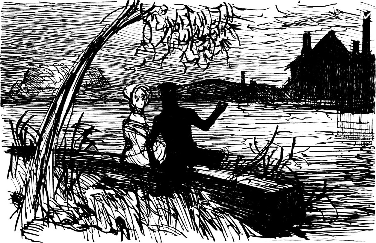 夏娃说:“真的,你使我惭愧得很。不过我们既然吐露彼此的感情,我可以告诉你,我生平除了你,心上不曾有过别人。一个女人能嫁一个像你这样的丈夫,是值得骄傲的。我是个没有前途的可怜的女工,不敢指望这样的好福气。”