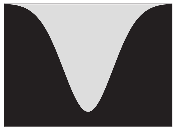 图1.4 无法用一条直线分隔的两个类别,分别用浅色和深色阴影表示,它们需要通过一个曲线分隔符来实现分隔。在三维空间中,这意味着没有任何平面能够分隔这两个类别,需要借助一个曲面来完成分隔。而在更高维空间中,这意味着没有任何超平面可以完成分类任务,而是需要一个超曲面来完成