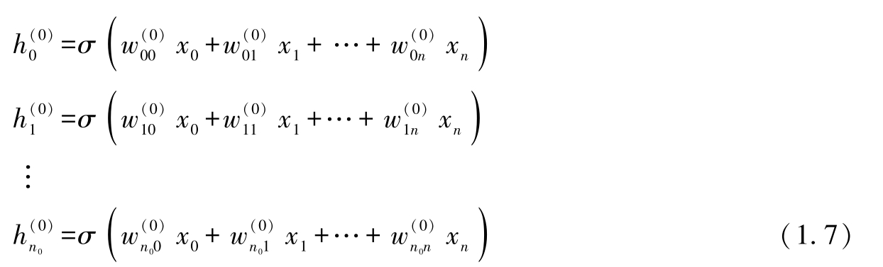 第0层:从 n +1个输入生成 n 0 个隐藏输出