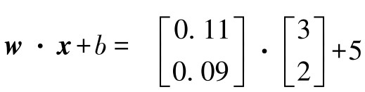 。尽管当前选定的权重和偏置参数表现较差——模型输出5.51与期望输出-0.89的差距较大,但这并不是关键。我们很快就会了解到如何选取更合适的参数值。现在,我们只需要注意到,点积为简单的加权求和模型的输出提供了一种简洁的表达方式。