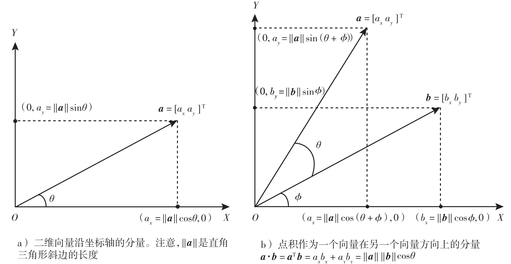 图2.7 向量分量和点积