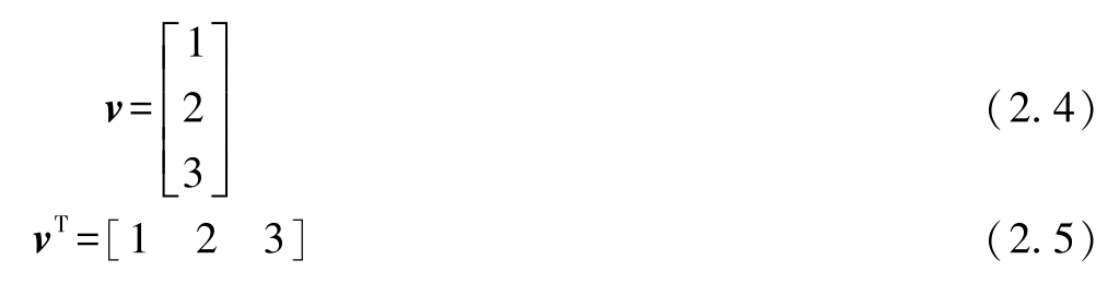 向量转置是矩阵转置的一个特例,所有的向量都是一个具有 n 个列向量元素的 n ×1矩阵。下面是一个任意向量及其转置的示例: