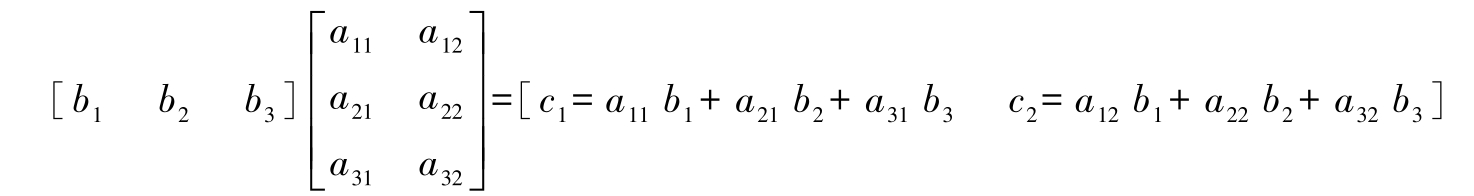 矩阵乘法的另一个特例是行向量与矩阵的乘法。例如, b T A = c ,即