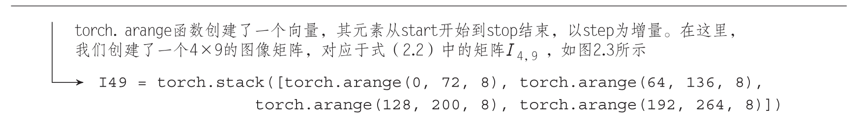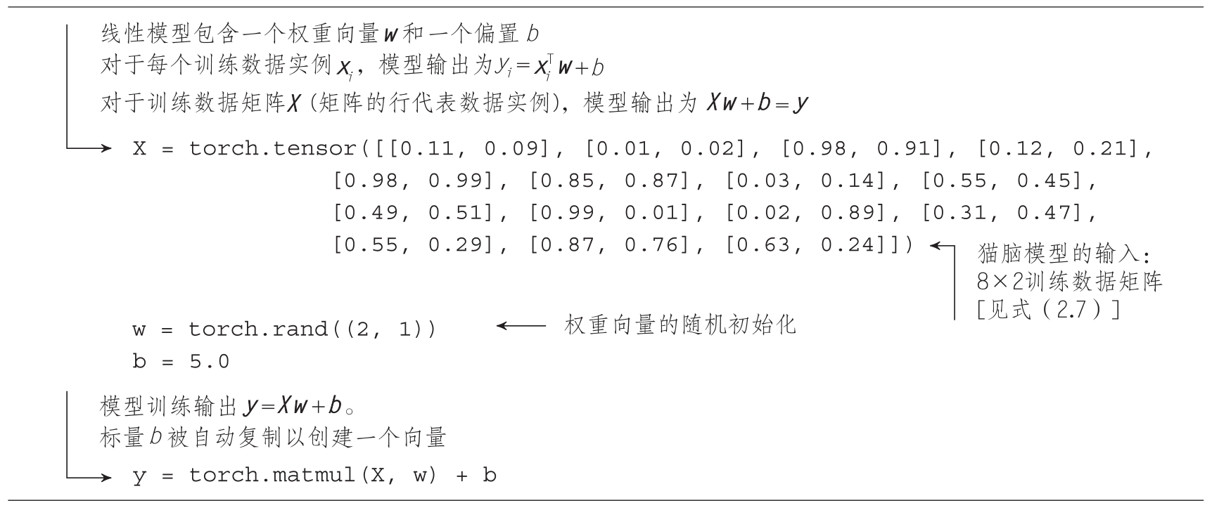 代码清单2.7展示了用于矩阵-向量乘法的PyTorch代码。