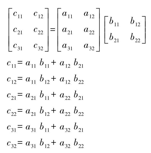 c i =a i 1 b 1 +a i 2 b 2 + … +a in b n