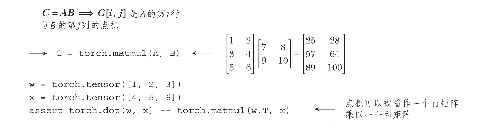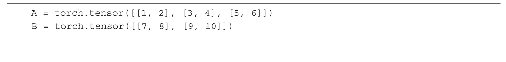 代码清单2.8展示了用于矩阵-矩阵乘法的PyTorch代码。