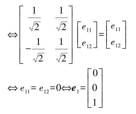根据假设, α 1 ≠0, λ 1 ≠ λ 2 ,并且 e 1 不全为零。因此,它们的乘积不可能为零。因此,我们最初的假设(即两个特征向量是线性相关的)不成立。