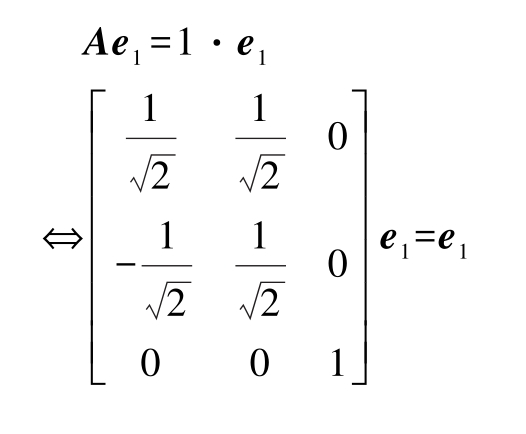 。每一个都将产生一个特征向量。以特征值1为例,其对应的特征向量为: