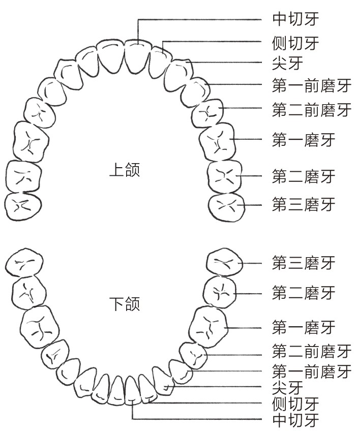 (*图中左侧牙齿与右侧牙齿名称相同)