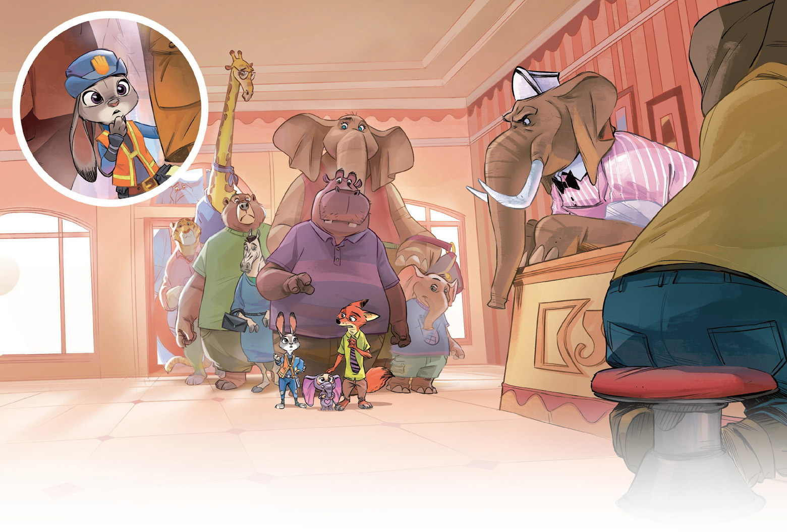“Well, I don't want to cause you any trouble, but I believe scooping ice cream with an ungloved trunk is a class three health code violation. Which is kind of a big deal. Of course, I could let you off with a warning if you were to glove those trunks and—I don't know—finish selling this nice dad and his son a ... what was it?” Judy smiled at the fox.