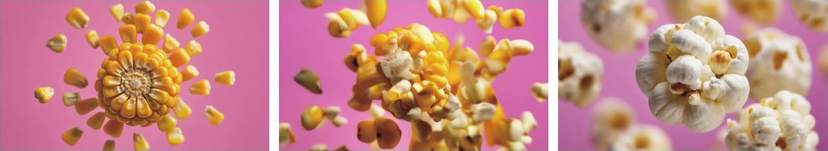 人工智能(Artificial Intelligence,AI)是研究、开发用于模拟、延伸和扩展人类智能的理论、方法、技术及应用系统的一门新技术科学,AIGC是指利用AI技术,通过对已有数据的学习,自动生成文本、图像、音频、视频等多种内容形式的技术。简单来说,AIGC是AI技术的进一步延伸和创新,不仅让机器拥有了创新能力,更引领了一场内容生产领域的变革,将人工智能的应用推向了一个更为宽广和深远的新阶段。作为一种革命性的内容创作模式,AIGC极大地丰富了内容创作的形式,能够实现从简单文本到复杂多媒体内容的全面自动化生成,图1-1所示为使用AIGC创作的由玉米粒转变为爆米花的创意视频。