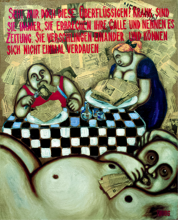 瞧这些多余的人吧!他们总是在生病,他们吐出他们的胆汁,却称之为新闻。他们互相吞吃,却怎么也消化不了。(P55)