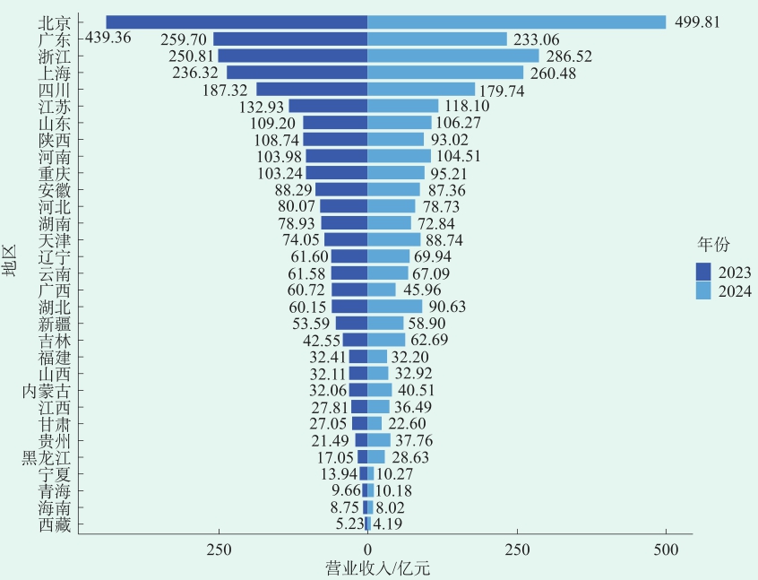 图3.2 2023—2024年可比样本中各地区单位营业收入