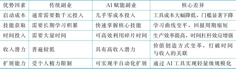 表1-2 AI副业相比传统副业的系统性优势