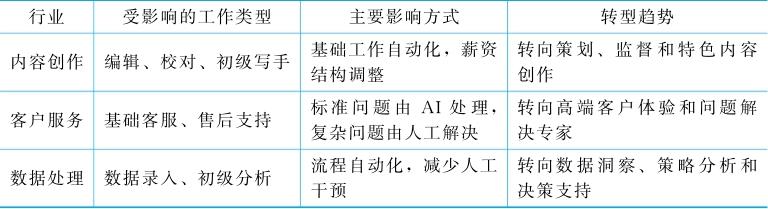 最容易受到AI影响的领域主要是表1-1中的三类。