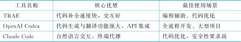 虽然张文杰主攻创意路径,但王睿还是简要介绍了技术路径核心工具,帮助张文杰了解完整生态(见表1-7和表1-8)。