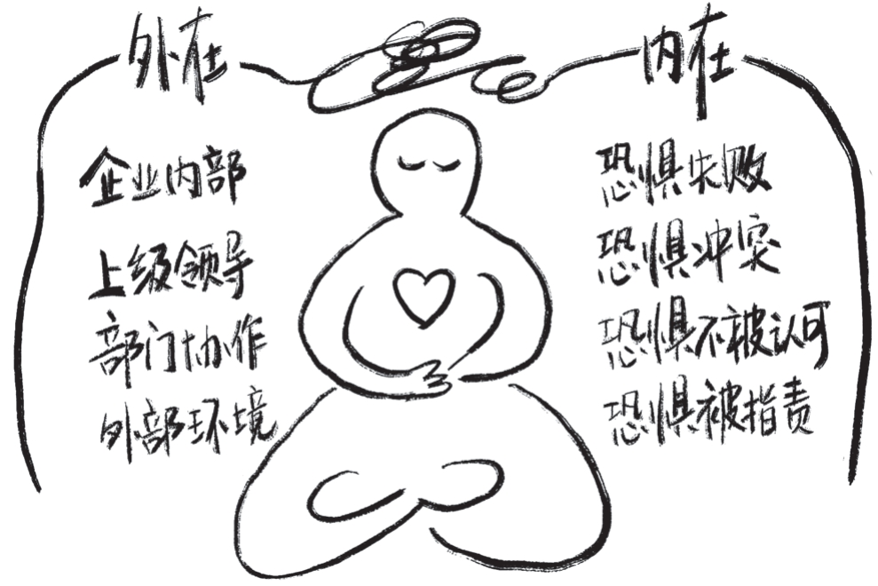 在职场中,员工最常见的内在干扰是恐惧。具体表现为:害怕不被认可、不被接纳、被裁员、被边缘化、失败、冲突、批评与指责等。当员工被恐惧情绪笼罩时,往往会产生自我怀疑,缺乏自信,甚至启动心理防御机制,表现出保守、退缩、回避甚至抗拒的行为。这种状态下,难以实现良好的绩效表现。
