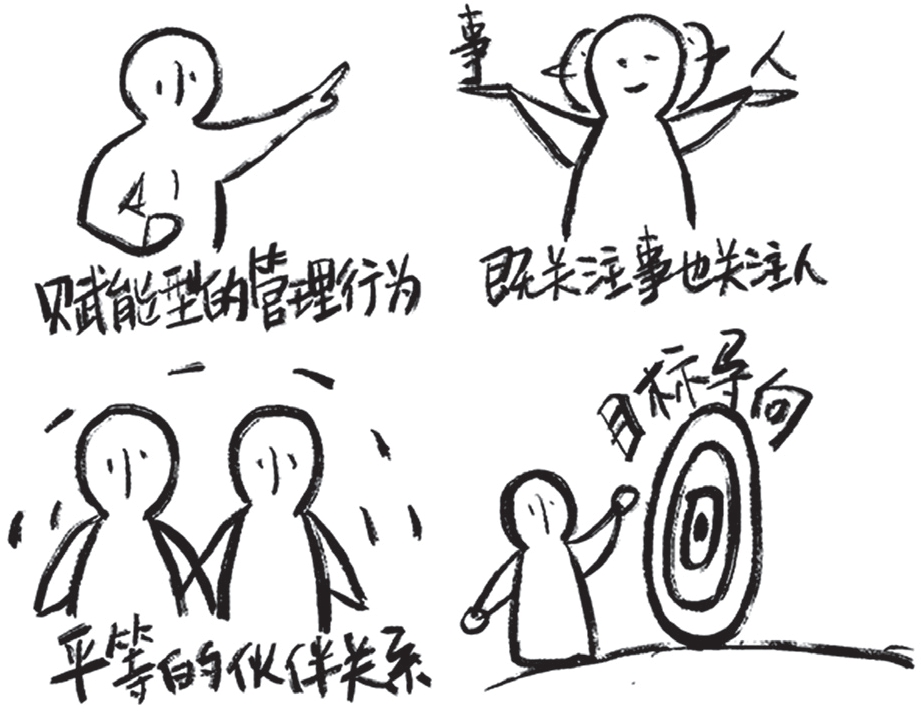 赋能型的管理行为: 采取的行为是激发、启发、鼓励、认可、理解与支持。
