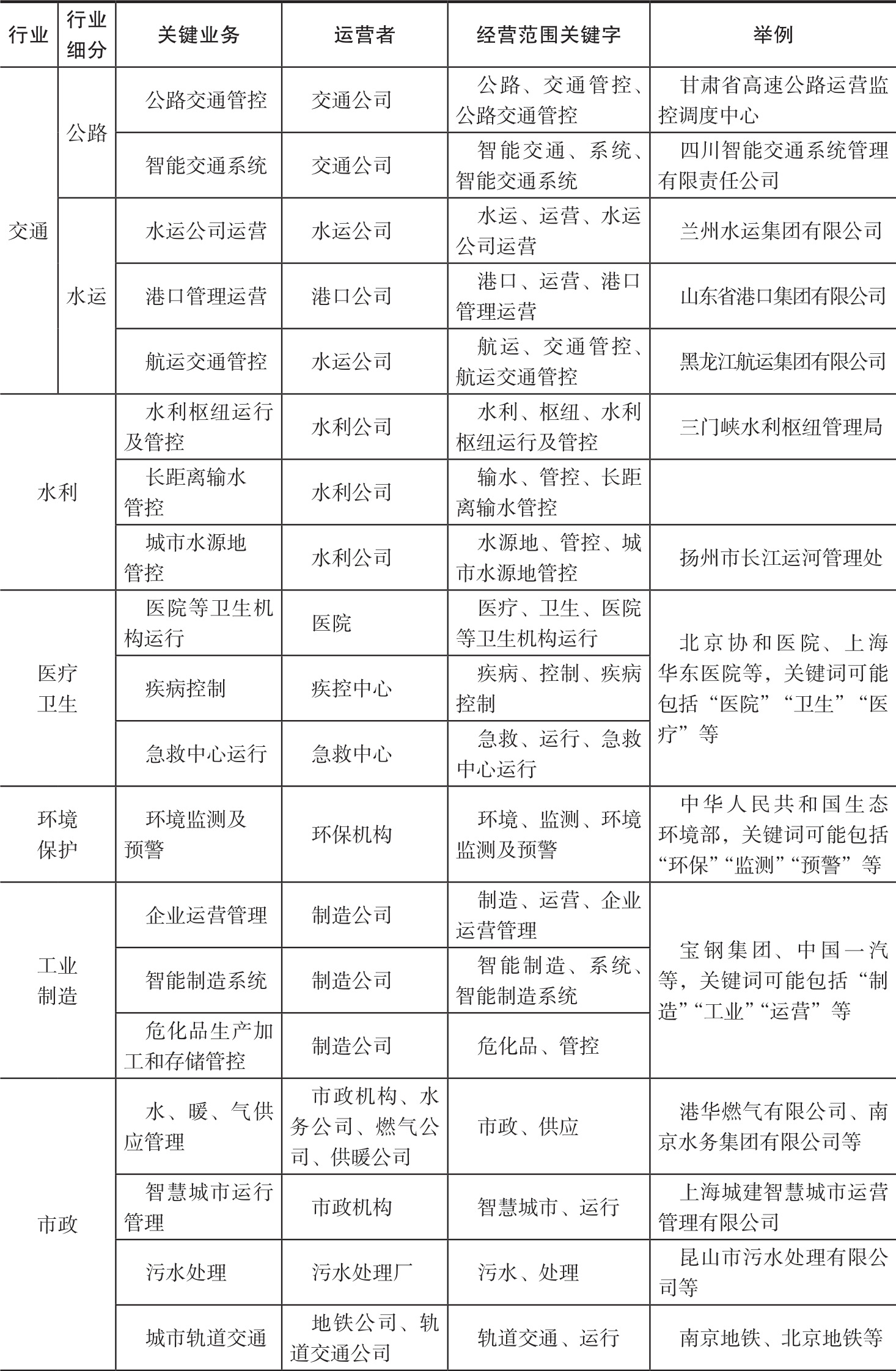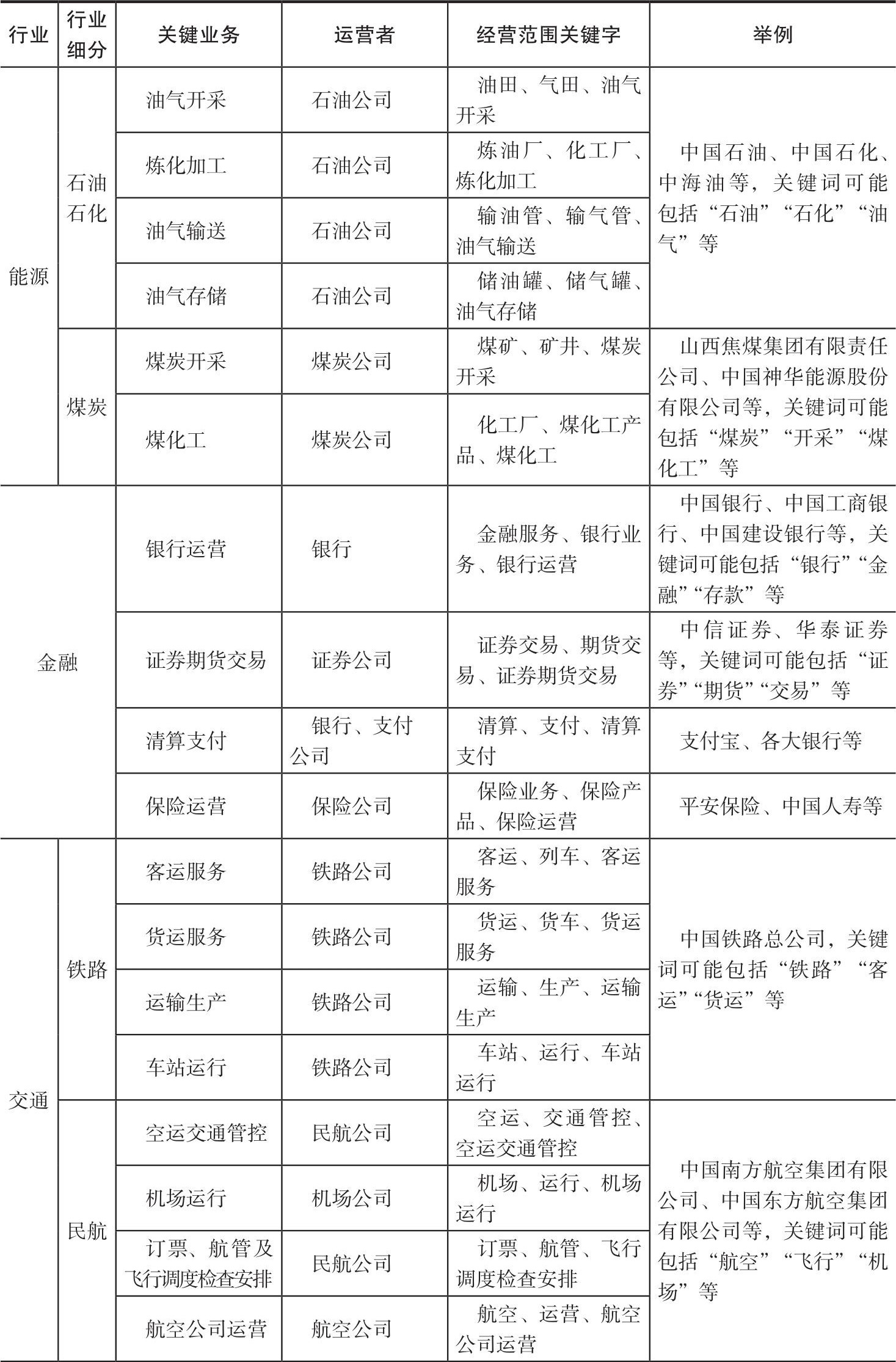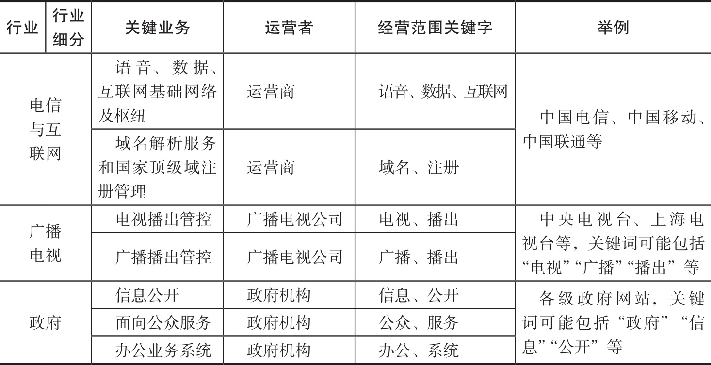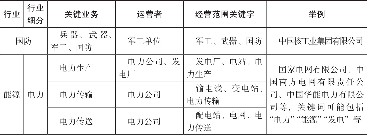 表2-2 关键信息基础设施