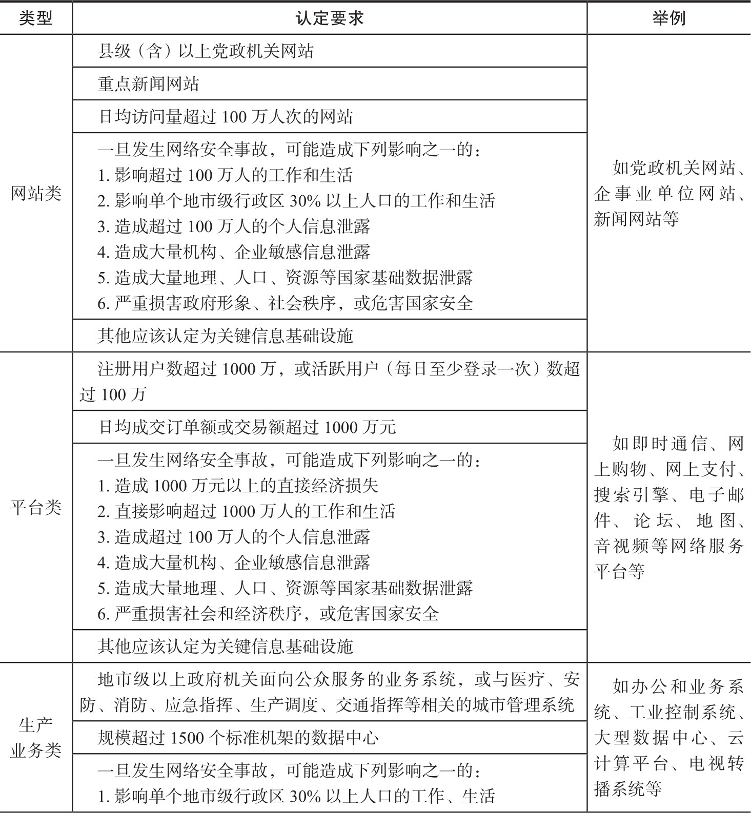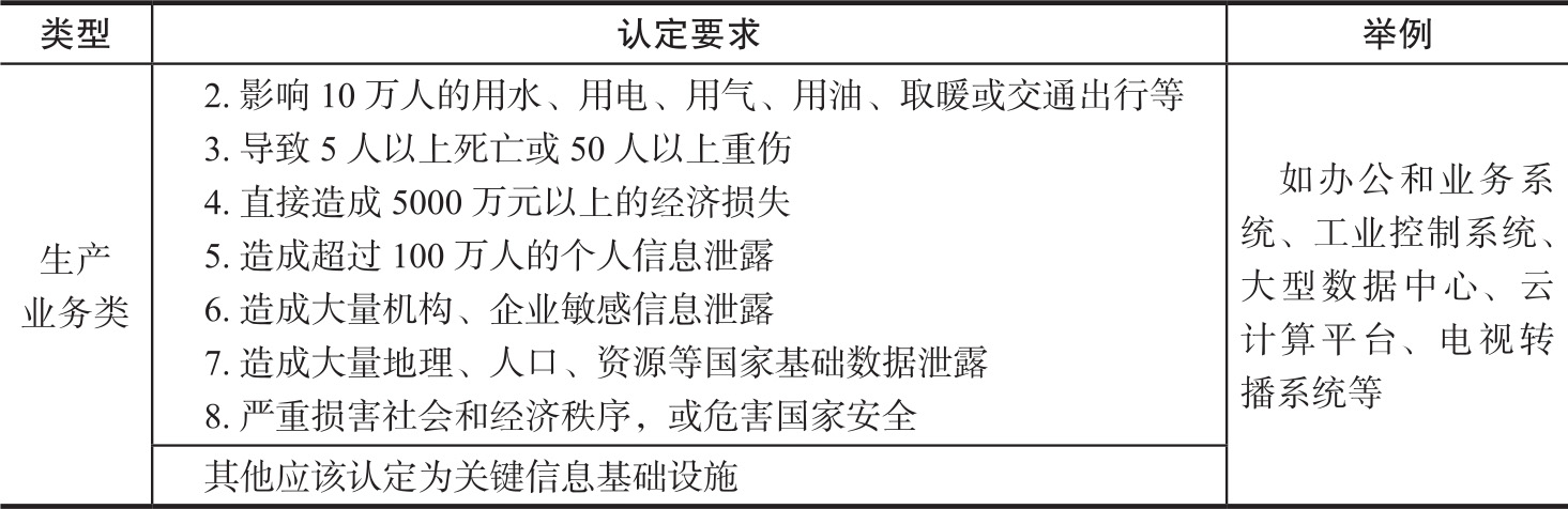 表2-1 关键信息基础设施认定要求