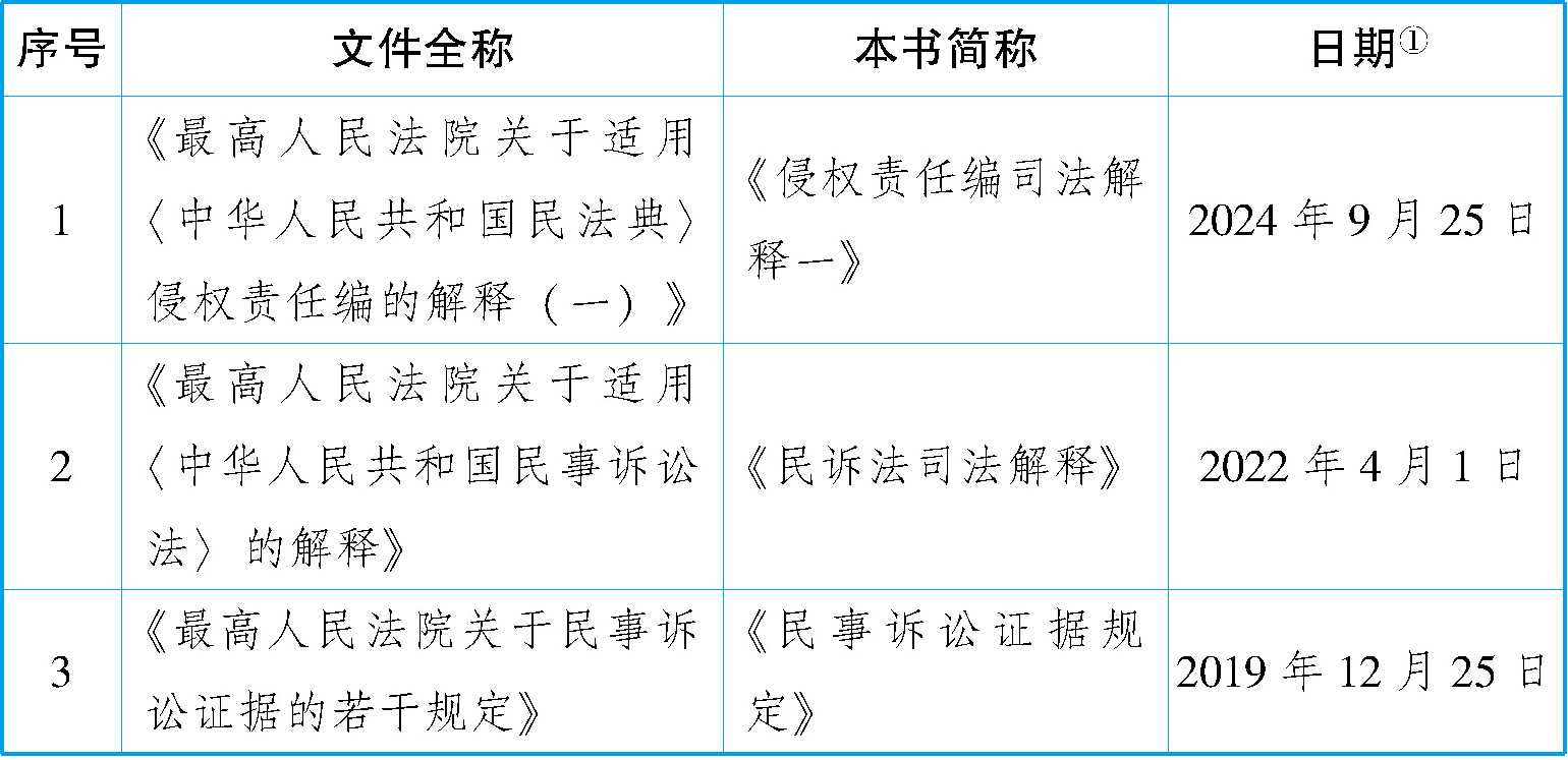 四、为了节省正文篇幅,本书对于具体法律条文将采取“引注”的方式。本书中的“引注”主要包括:(1)有关法律规定、行政法规、司法解释的条文;(2)有关专家学者的理解和解读;(3)最高人民法院的判决内容;(4)域外国家的法典和立法例;等等。